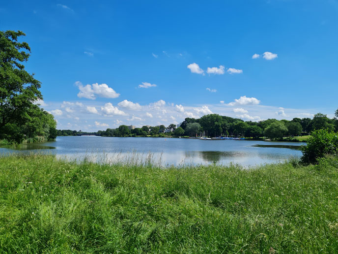 Der Aasee lockt mit malerischen Wegen Spaziergänger,