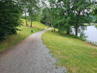 Spielplätze. Das Seeufer wird von einem gut angelegten